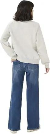 Pants Suiting KAsakura Damen Hose 3/4 Capri Casual Arbeitshose Gerades Bein Freizeithose High Waist Caprihose Faded Denim 38
