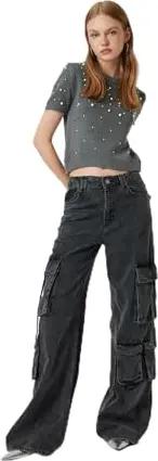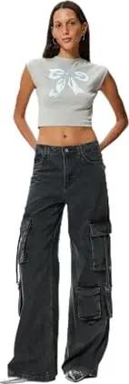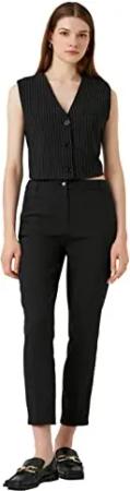 Women Medium Waist Pocket Detail Crop Cigarette Trousers