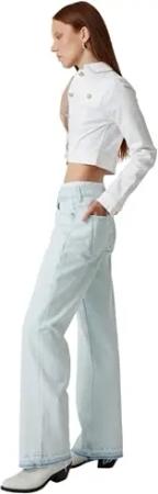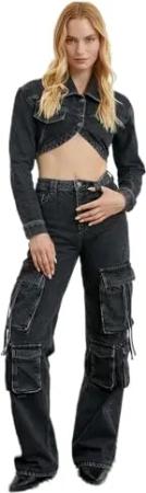 Crop Jean Jacket Slim Fit Asymmetric Cut Cotton