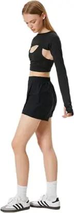 Damen Pocket Detail Drawstring Shorts, Black (999), 34 EU