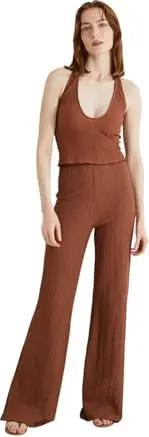 Damen Slitted Trousers Flare Leg Slim Fit Pants, Black (999), 38 EU