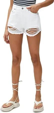 Women Cotton Pocket Detail Destroyed Mini Jean Shorts