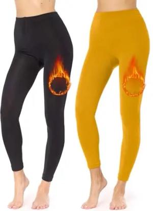 2er Pack Thermo Leggings Damen gefütterte Thermoleggings Thermohose Damen Winter Leggings warm Outdoor gefüttert MS-ATX-441 (Schwarz/Senf, 3XL-4XL)