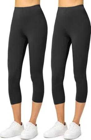 2er Pack Damen Leggings 3/4 aus Baumwolle mit Stretch – Leichte Capri Leggings Damen aus atmungsaktiver, elastischer Baumwolle, ideal für Yoga Sport MS10-199 (Schwarz/Schwarz, S)