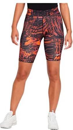Women's W NSW ESSNTL AOP PRNT Shorts, Black/orange, XS