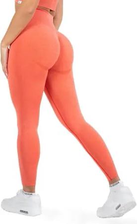 Leggings Damen Amaze Pro mit Scrunch, Butt Lift Sporthose High Waist V-Shape Trainingshose Seamless Blickdicht Yogahose Für Sport Fitness Alltag, Größe:XS, Color:Orange Melange