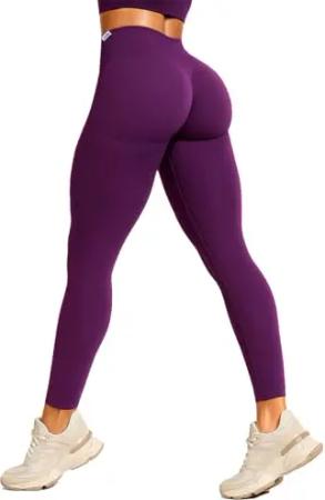 Leggings Damen Slayton Scrunch, Seamless Push-Up Sporthose High Waist V-Shape Bund Sportleggings Invisible Scrunch Blickdicht Yogahose für Fitness Gym Yoga & Alltag, Größe:XS, Color:Violett