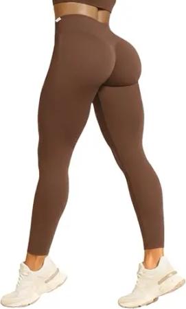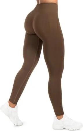 Leggings Damen Amaze Pro mit Scrunch, Butt Lift Sporthose High Waist V-Shape Trainingshose Seamless Blickdicht Yogahose Für Sport Fitness Alltag, Größe:XS, Color:Braun