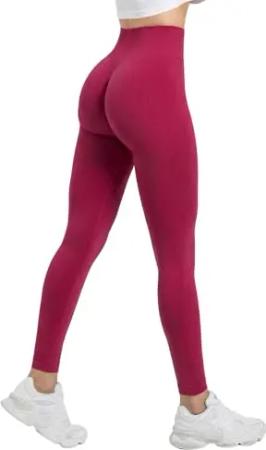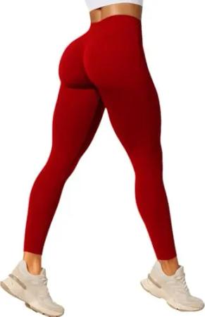 Leggings Damen Slayton Scrunch, Seamless Push-Up Sporthose High Waist V-Shape Bund Sportleggings Invisible Scrunch Blickdicht Yogahose für Fitness Gym Yoga & Alltag, Größe:M, Color:Rot