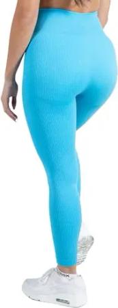 Leggings Damen High Waist Amaze RIPP, Blickdichte Sporthose aus Rippstoff, V-Shape Seamless Scrunch Sport Leggins, Squat-Sicher für Yoga Fitness & Alltag, Größe:S, Color:Hellblau Melange