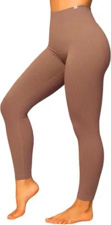 Leggings Damen High Waist Amaze RIPP, Blickdichte Sporthose aus Rippstoff, V-Shape Seamless Scrunch Sport Leggins, Squat-Sicher für Yoga Fitness & Alltag, Größe:XS, Color:Hellbraun
