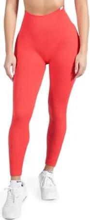 Leggings Damen High Waist Amaze RIPP, Blickdichte Sporthose aus Rippstoff, V-Shape Seamless Scrunch Sport Leggins, Squat-Sicher für Yoga Fitness & Alltag, Größe:XS, Color:Rot