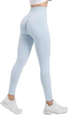 Leggings Damen Slayton Scrunch, Seamless Push-Up Sporthose High Waist V-Shape Bund Sportleggings Invisible Scrunch Blickdicht Yogahose für Fitness Gym Yoga & Alltag, Größe:XL, Color:Hellblau