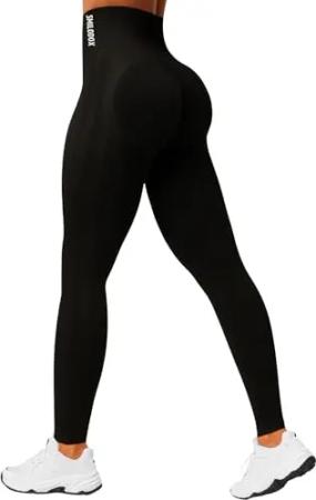 Leggings Damen Slayton Scrunch, Seamless Push-Up Sporthose High Waist V-Shape Bund Sportleggings Invisible Scrunch Blickdicht Yogahose für Fitness Gym Yoga & Alltag, Größe:XS, Color:Schwarz