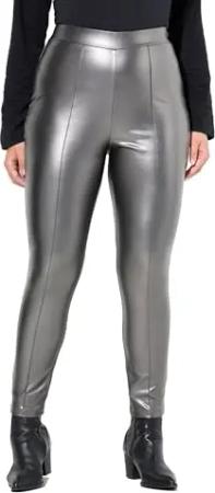 Damen große Größen Übergrößen Plus Size Leggings, Lederoptik, schmales Bein, Elastikbund Silber 50+ 832730131-50+