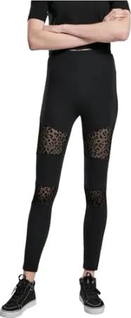 Ladies Flock Lace Inset Leggings Black S