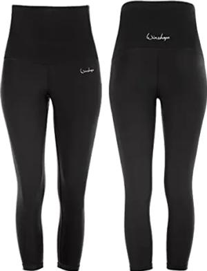Damen Functional Comfort 7/8-tights Hwl317c “high Waist” Mit V-Shape Applikation Und Core-Bund Leggings, Schwarz, S EU