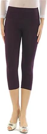 Damen Capri 3/4 Leggings Leggins Baumwolle Hose Wäsche hoher Bund dunkellila M