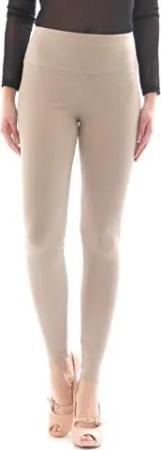 Damen Leggings lang Hose Leggins Baumwolle hoher Bund mit Taschen beige S