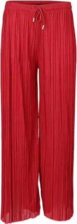 Damen Plisseehose - lockere weich fließende Chiffonhose - Lange Sommerhose - Trendige Marlenehose 883 - Bordeaux L/XL
