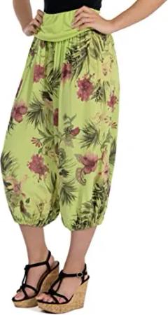 Malito Damen Aladinhose mit floralem Muster, Haremshose zum Tanzen, Pumphose zum Chillen - Freizeithose - Pluderhose 8938 (grün)