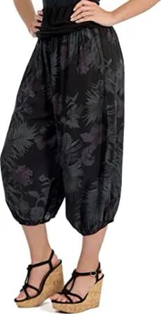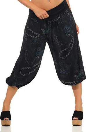Malito - Damen Haremshose kurz mit Print - Pumphose aus Baumwolle - Leichte 3/4 Stoffhose - Pluderhose zum Tanzen, Chillen & Yoga - knielange Capri Hose 7182 (Schwarz)