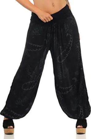 Malito Damen Aladinhose mit Print | Haremshose zum Tanzen | Pumphose zum Chillen - Freizeithose - Pluderhose 7185 (schwarz)