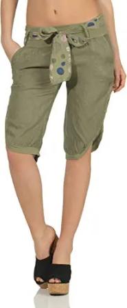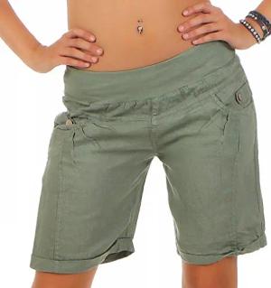 Malito Damen Bermuda aus Leinen | lässige Kurze Hose | Shorts für den Strand | Pants - Hotpants 3001 (Oliv, S)