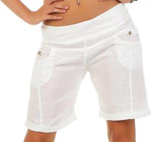 Malito Damen Bermuda aus Leinen | lässige Kurze Hose | Shorts für den Strand | Pants - Hotpants 3001 (weiß, S)