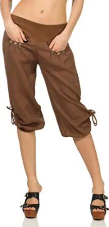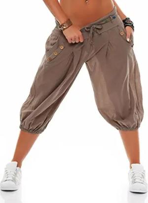 Malito – Damen Haremshose – Pumphose aus Baumwolle – Leichte Stoffhose – Kurze Sommerhose für warme Tage – Aladinhose für Sport und Freizeit 3416 (Fango)