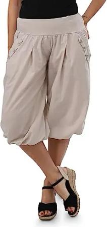 Malito - Damen Caprihose - Kurze Unisize Pumphose aus Baumwolle - leichte Bequeme Stoffhose für warme Tage - dünne Aladinhose für den Sommer 23286P (Größe: 34-40 beige)