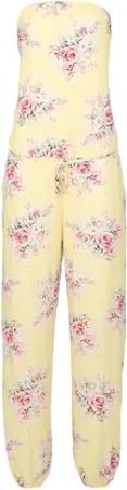 Malito Damen Einteiler geblümt - Overall mit Stoffgürtel - Jumpsuit mit Blumenmuster - Playsuit - Romper 1495 - (Gelb)