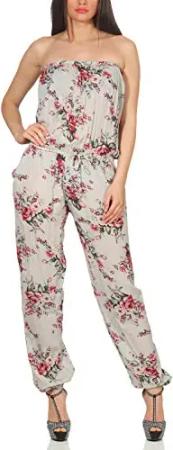 Malito Damen Einteiler geblümt - Overall mit Stoffgürtel - Jumpsuit mit Blumenmuster - Playsuit - Romper 1495 - (Hellgrau)