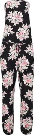 Malito Damen Einteiler geblümt - Overall mit Stoffgürtel - Jumpsuit mit Blumenmuster - Playsuit - Romper 1495 - (Schwarz)