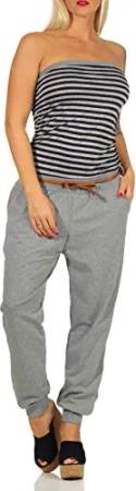 Malito Damen Einteiler gestreift | Overall mit Gürtel | Jumpsuit im Marine Look - Playsuit - Romper 9610 (grau)