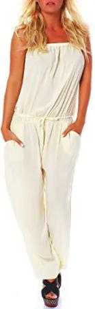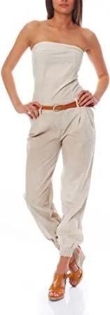 Malito Damen Einteiler in Uni Farben | Overall mit Gürtel | langer Jumpsuit - Romper - Hosenanzug 1585 (beige, XL)