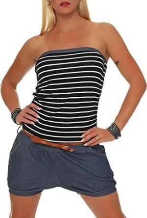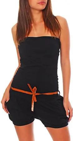 Malito - Damen Jumpsuit - Einteiler mit Gürtel & Taschen - Bandeau Sommer Overall - kurzer trägerloser Playsuit - unifarbener Romper 8964 (Schwarz)