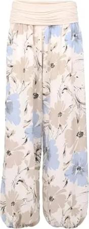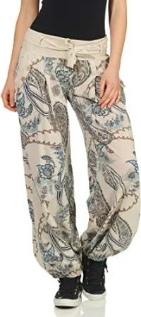 Malito – Damen Haremshose mit Print – Pumphose aus Baumwolle – Leichte Stoffhose – Sommerhose für warme Tage – Aladinhose 3485 (Beige | Größe 34-40)