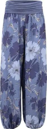 Malito - Damen Haremshose floraler Blumen Print - atmungsaktive Pumphose - dünne Freizeit Strandhose - hautfreundliche Aladinhose 1485 - (Jeansblau)