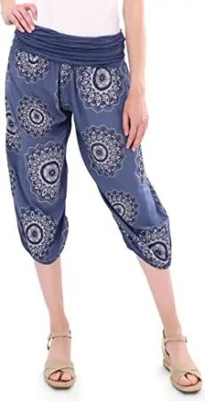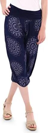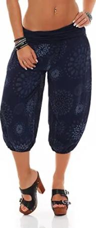 Malito - Damen Haremshose kurz mit Print - Pumphose aus Baumwolle - Leichte 3/4 Stoffhose - Pluderhose zum Tanzen, Chillen & Yoga - knielange Capri Hose 7182 (Dunkelblau)