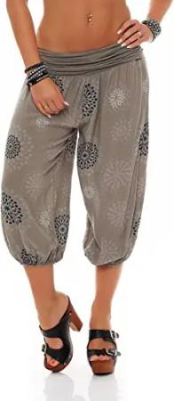 Malito - Damen Haremshose kurz mit Print - Pumphose aus Baumwolle - Leichte 3/4 Stoffhose - Pluderhose zum Tanzen, Chillen & Yoga - knielange Capri Hose 7182 (Fango)