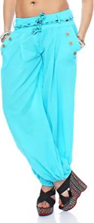 Malito - Damen Haremshose - Leichte Stoffhose aus Baumwolle - Bequeme Hippie Sommerhose für warme Tage - Aladinhose/Pumphose 3417 (Babyblau)