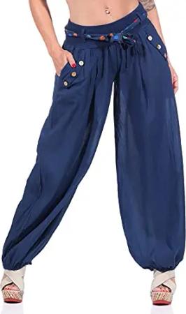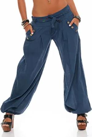 Malito - Damen Haremshose - Leichte Stoffhose aus Baumwolle - Bequeme Hippie Sommerhose für warme Tage - Aladinhose/Pumphose 3417 (Dunkelblau)