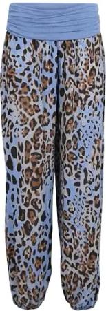 Malito - Damen Haremshose Leo Print - luftig leichte Pumphose - dünne Sommer Strandhose - Freizeithose Aladinhose zum Chillen 1484 - (Jeansblau)
