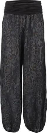 Malito - Damen Haremshose Leo Print - luftig leichte Pumphose - dünne Sommer Strandhose - Freizeithose Aladinhose zum Chillen 1484 - (Schwarz)