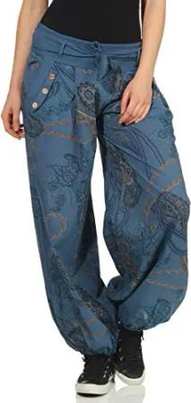 Malito - Damen Aladinhose mit Print - Haremshose zum Tanzen - Pumphose zum Chillen - Freizeithose - Pluderhose 7185 (blau)