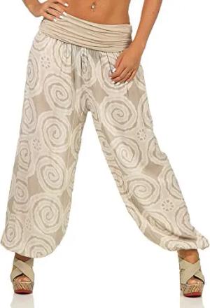 Malito – Damen Haremshose mit Spiral-Muster – Unisize Pumphose aus Baumwolle – Leichte Sommerhose für warme Tage – Stoffhose zum Tanzen & Chillen – Aladinhose 1718 (Beige)