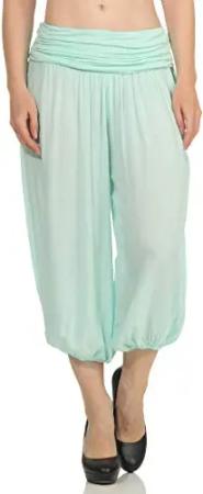 Malito – Damen Haremshose – Pumphose aus Baumwolle – Kurze Stoffhose für den Sommer – Capri Pluderhose zum Tanzen, Chillen & Yoga – knielange Hose 1483 (Mint)