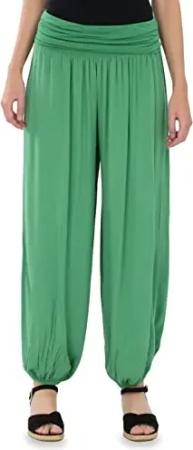 Malito - Damen Haremshose - Pumphose aus Baumwolle - leichte Sommer Stoffhose - Pluderhose zum Tanzen & Chillen - dünne Aladinhose 1482 (Grün)
