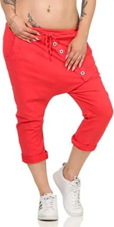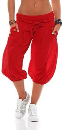 Malito – Damen Haremshose – Pumphose aus Baumwolle – Leichte Stoffhose – Kurze Sommerhose für warme Tage – Aladinhose für Sport und Freizeit 3416 (Rot)